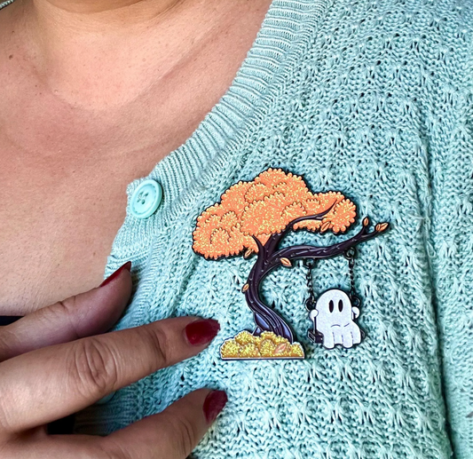 Wandering Ghost, Haunted House moving enamel pin with glitter!