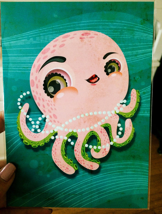 Octopus 5x7 Regular Print, Kitschy Home Decor, Gallery Wall Art, Nostalgic Wall Hanging