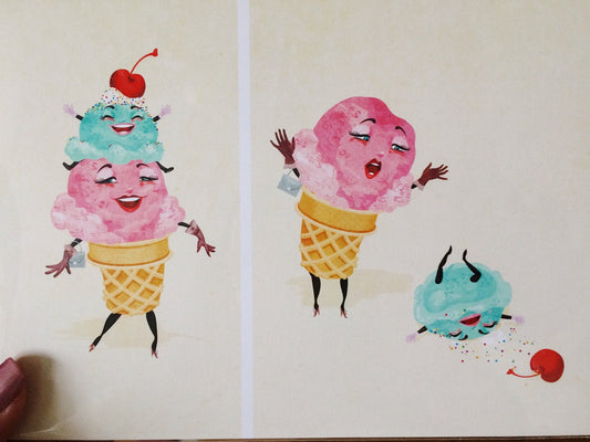 Ice Cream Tragedy Regular Print, Original Home Decor, Retro Vintage Illustration, Fun Housewarming Gift