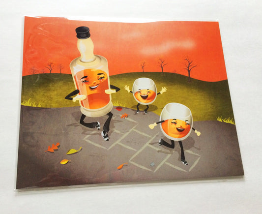 Hop Scotch Regular Print, Quirky Bar Decor, Original Illustration, Retro Vintage Design