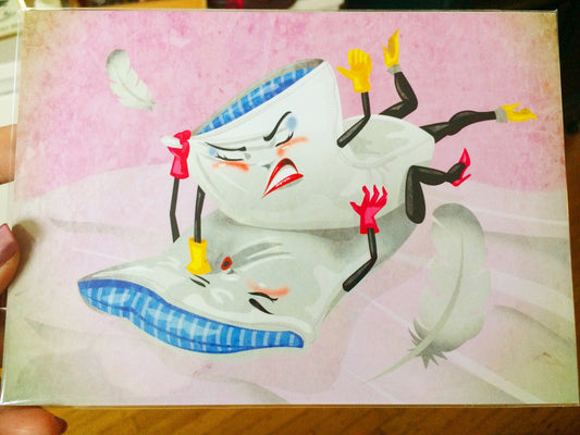 Pillow Fight 5x7 Regular Print, Kitschy Bedroom Decor, Retro Vintage Illustration, Gallery Wall