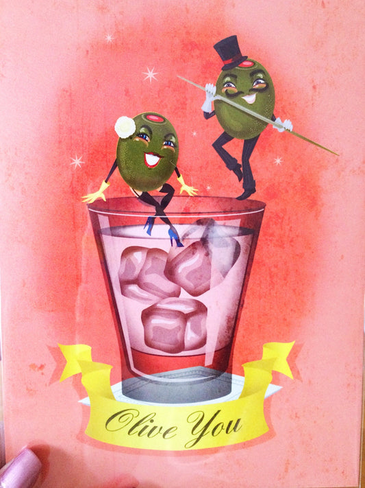Olive You Regular Print, Martini Illustration, Home Bar Wall Art, Original Illustration