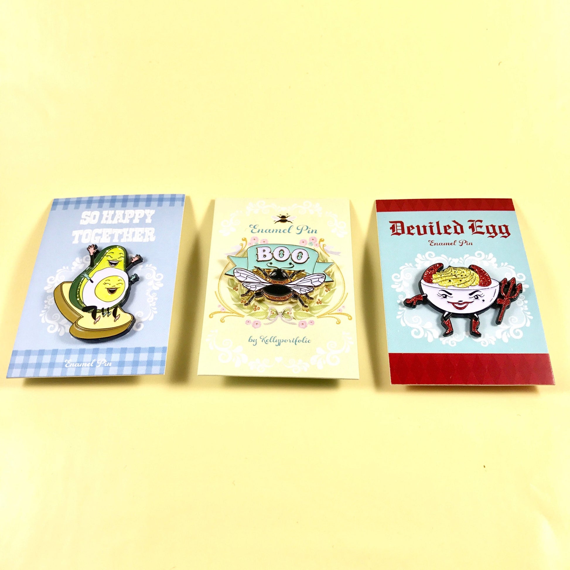Add some sparkle to your outfit with our deviled egg enamel pin! Based on Kitschy Delish's original illustration, this pin features red and yellow glitter for a touch of fun. Measuring approximately 1 1/2 inches wide by 1.25 inches tall, it comes with two rubber backings for secure attachment to clothing.