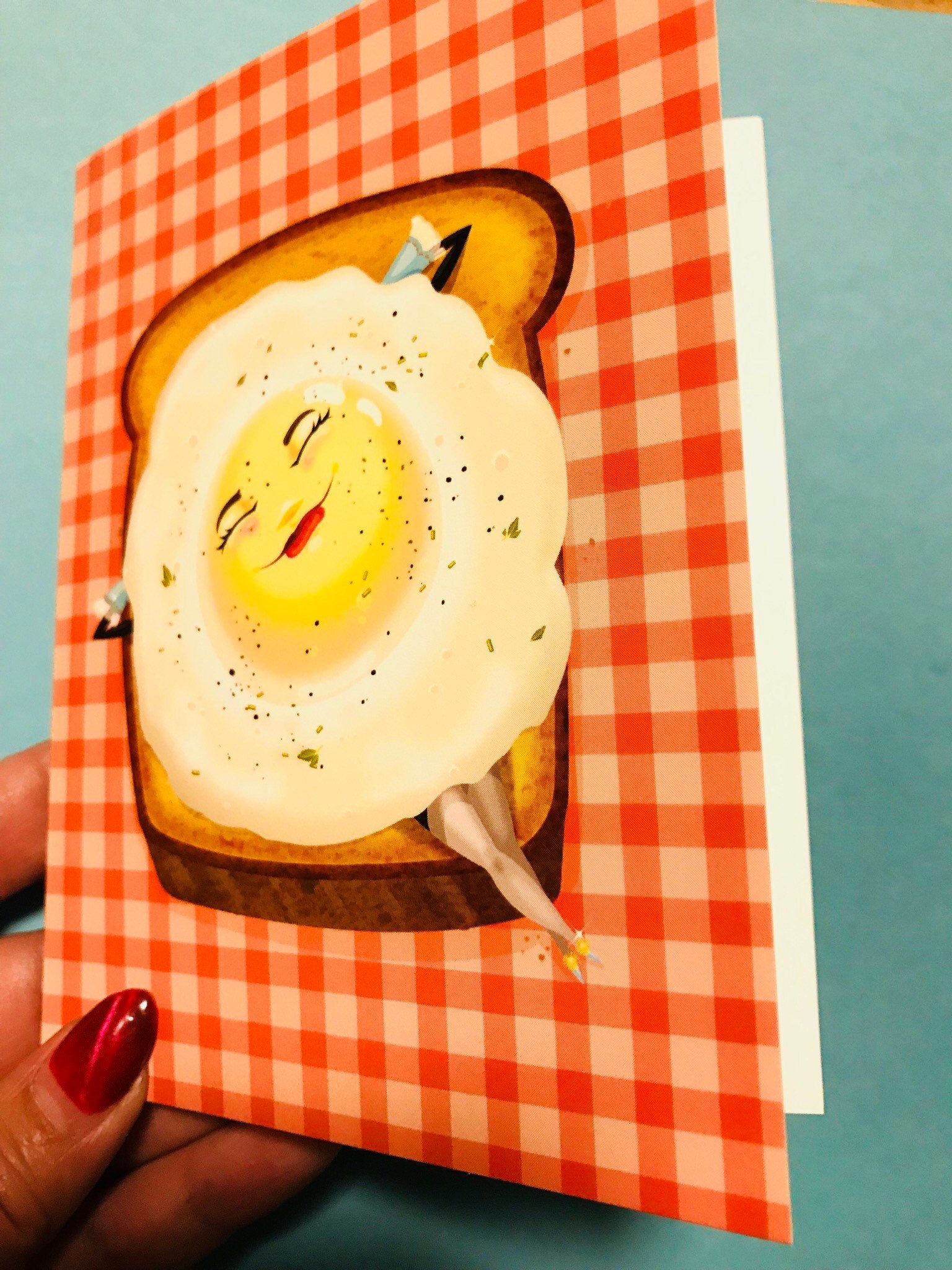 And original illustration by Kelly Jackson. This greeting card measures 4 1/2 x 5.25.